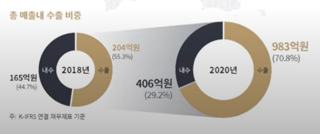 - 2021년 목표 매출액은 2421억이였으며 실제 실적은 2143억으로 약 300억 정도 미달하였으나, 예상치에 근접한 숫자이다. 보통 제조업 같은 경우 당해 실적 그리고 다음 년도 실적까지는 그래도 디테일한 예상치를 내부적으로 갖고 있고 관리를 하고 있다.